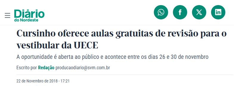 E só pra gente se esnobar, 😎😎😎 a gente foi o único que saiu e que sobreviveu até hoje, e que depois que a gente saiu, a UECE continuou a criar outros projetos de cursinho.