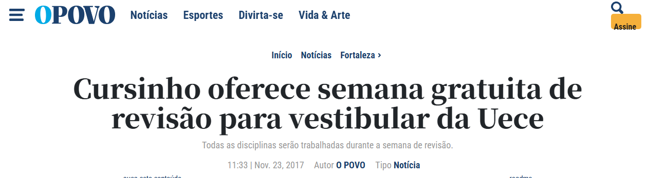E hoje, se você ainda busca passar no vestibular, procure a UECE ou a UFC que você vai encontrar projetos maravilhosos… com preços populares que vão te ajudar a passar no vestibular.