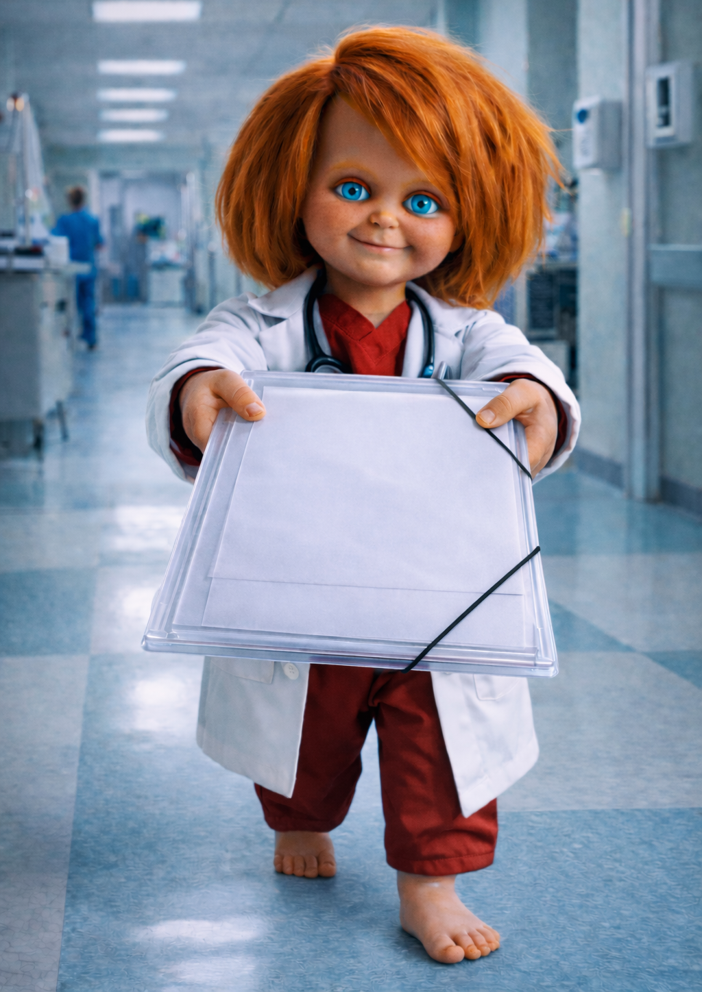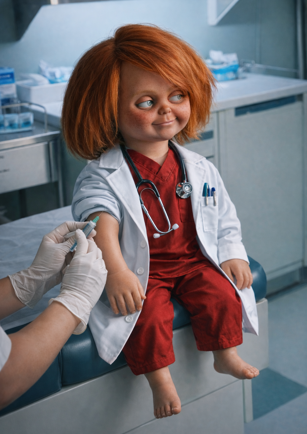 Deve usar o pijama vermelho com o jaleco branco. - Detalhe, vermelho é vermelho! Não é vinho...